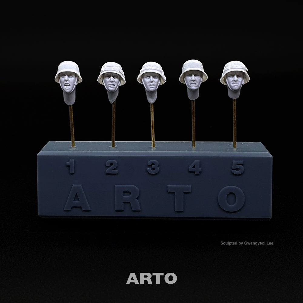 5 deutsche Köpfe mit M42 Helm und angespanntem Gesicht im Gefecht WWII