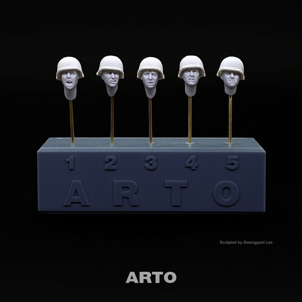 5 US Köpfe mit M1 Helm und angespanntem Gesicht im Gefecht WWII